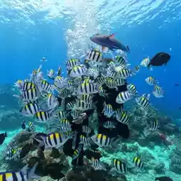 Then suddenly a large bullfish appeared. Its size gave me a slight scare, but it slowly glided past me, looking handsome and majestic. There is also a group of colorful tropical fish swimming around, which looks like a scene from an animated movie, it is totally unreal!