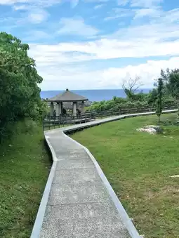 Stone Umbrella is located on County Road 11 in Chenggong County, Taitung County. The limestone promontory is nearly 1 kilometer long. There were originally several umbrella-shaped sea erosion rock pillars near the shore of the promontory, so it was called Stone Umbrella. Currently, only an isolated Stone Umbrella remains. The Stone Umbrella is a special sea erosion landform on the eastern coast. It is the result of long-term erosion by wind and rain over the years, forming a shape that is thin at the bottom and wide at the top, resembling an open umbrella. Shen Wencheng has a song called "Come and Go to Taitung" which has made the Stone Umbrella, a well-known scenic spot in Taitung, well-known to everyone. You can reach the sea erosion area by following the wooden plank trail next to the scenic pavilion. Standing on top and overlooking the magnificent Pacific Ocean and the green coastal mountains in the sky, listening to the sound of the waves carefully is a different feeling.