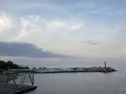 At the end of the long embankment of the port stands a bright red lighthouse, which lights up regularly every night to guide the ships entering and leaving the fishing port.