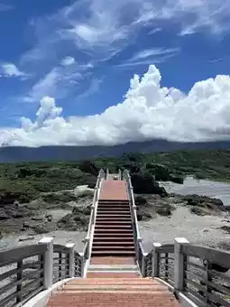 🎒We challenged ourselves to walk onto the bridge and walked step by step to the island on the other side. We could overlook the entire Pacific Ocean along the way. It was windy but super cool!