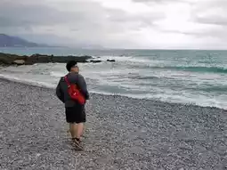 Legend says three immortals once set foot here—now visitors cross the wave-like bridge to explore the island’s volcanic rock formations, sea caves, and coral reefs 🌋🪸.Most of the beach was covered in sea-smoothed volcanic pebbles.