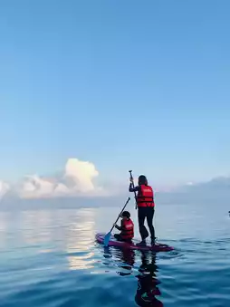 Activity: "SUP Paddleboarding" - If you want to watch the sunrise while paddleboarding, you can sign up for a SUP activity. At dawn, you'll paddle out from the harbor on a SUP, greeted first by the sparkling blue tears in the sea, followed by the slowly rising sun. This sea activity is led by professional guides who also take photos, making it both safe and fun!