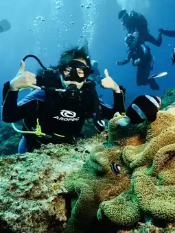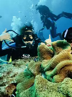 Activity: "Scuba Diving Experience" - This is a one-on-one session with a coach and requires prior reservation. Before diving, there is a one-hour training session. The professional and attentive coaches ensure that even first-timers can dive with confidence. The underwater world of Green Island is vibrant and colorful. During the dive, you can send waterproof postcards prepared in advance to friends or yourself, creating a memorable and delightful experience!