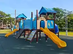 This unique park, located across from the Taitung Art Museum, is also known as "Birthday Cake Park" because of the large cake-shaped art installation within it. This is Taitung's Park No. 15, and everyone calls it "Birthday Cake Park," a fitting name. The park's playground equipment, coupled with the adjacent lawn, is plenty for children to run, jump, and play with. While the variety of playground equipment isn't large, as long as there's something to play with, no matter how many there are, they'll still have a blast. However, the park only has lawn, so if you want to avoid the sun, you'll need to rest under the shade of a roadside tree. This is best reserved for afternoons or when the sun is lower, as children will get sunburned. As long as children want to play, no matter how hot it gets, they'll be unstoppable. The most important thing is that they have fun. If you still can't get enough, head to the art museum across the street. In the center of the museum, there's an iron-framed wooden pallet installation where children can play or relax. If you come to Taitung, you might as well come here for a walk. It is a good place to relax.