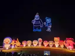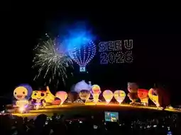 Every July and August, Taitung hosts the annual International Hot Air Balloon Fiesta. A variety of hot air balloons of varying shapes are displayed and tethered at Luye Highland. This year marks the 15th anniversary of the Hot Air Balloon Fiesta, and the event features the first collaboration with the incredibly popular Doraemon character. The hot air balloon event's most popular attraction is the Hot Air Balloon Light Sculpture Concert. Held at night on the vast grasslands of Luye Highland, dozens of flaming hot air balloons blaze to the rhythm of music, creating a breathtaking spectacle. Drone-designed patterns fill the sky, and the fireworks display creates a truly spectacular spectacle. Each light sculpture show attracts 30,000 to 40,000 people, who gather on the ground to enjoy this breathtaking visual feast!