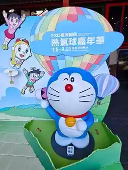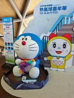 Speaking of cartoons, there's a character who looks very much like a raccoon, yet hates being called a raccoon. It's Doraemon, the "cat-shaped robot," beloved by both adults and children. This year's Taitung Taiwan International Hot Air Balloon Fiesta features this raccoon... oh, no, it's Doraemon, the "cat-shaped robot." The hot air balloon fiesta is offering a special promotion where you can collect QR codes at six locations and redeem them for capsule toy tokens at the Taitung Tourist Service Center. The capsule toy machine is right in front of the station. I wanted to give my kids a chance to play the machine, but I didn't win any on my first trip in July. So, I drove all the way to Taitung on August 10th to get one. By noon, the daily quota of 200 tokens had already been redeemed. I felt like cursing Changhua. The next day, I asked my wife if we wanted to go to Taitung to get tokens, and she immediately said yes. As long as there was food or entertainment, she'd say yes, let's go. I was driving, and as soon as I got in the car, he automatically went to sleep. What I want to say is that Taitung's Hot Air Balloon Carnival attracts many tourists every year. It is considered a landmark event in Taiwan, just like the Taiwan Lantern Festival. This event will end on August 21st. Those who want to visit the Hot Air Balloon Carnival or travel to Taitung should hurry up, otherwise this civet cat will leave in a time machine when its time is up, and you may not know when you will see it again.
