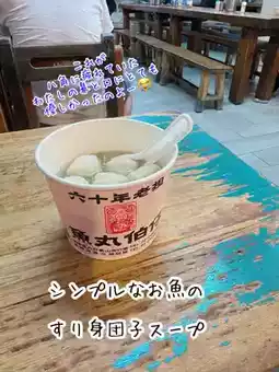 When I ordered boiled dumplings a long time ago, the dumplings were in a clear soup that looked like hot water, so I wonder if you eat them with something on them? I thought it was soup. When I first came to Taiwan, I was impressed by the clear but delicious soup. This soup with fish paste meatballs was also really delicious. ✨ The fish balls were also delicious, as they were packed with the taste of fish. 😋 Above all, I'm tired of eating sweet things and I didn't want star anise for a while, so the amount was just right. 🥹 And the shop called Jiang Jia Cake Shop let me try their freshly baked pineapple cake. The pineapple cake was the best pineapple cake I've ever eaten, with a nice pineapple sourness and was very delicious, so I bought one to take home. And it felt like the pineapple was packed tightly. It seems to be a popular shop, so it's always crowded, and other things like Dan Huang Su are also popular, so they were sold out by the time I arrived just after lunch. I hope you'll use this as a reference when you come to Jiufen. ✨ #TaiwanTrip #AsiaTrip #Taiwan #Jiufen #AbsolutelyFreeTrip