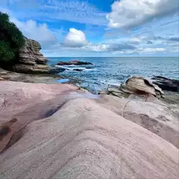 The rocks here are wild, honeycomb shapes, tofu-like layers, seaside cliffs and tide channels all blending together. It is extra scenic with the Twin Candlestick Islets visible in the distance. The hike is short but slippery in spots, so wear good shoes and keep an eye on tide times, high tide can block the cave exit.