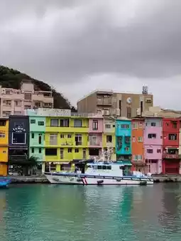 A cute harborside landmark that's a must-visit for anyone visiting Taiwan! 🏘️ Each house is painted in vibrant, brush-like tones, reflecting off the water and the morning sunlight. The atmosphere is warm and refreshing. 🌊☀️
