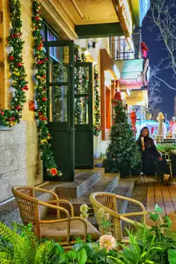 The Christmas tree next to it attracted many beautiful ladies to line up to check in and take pictures.
