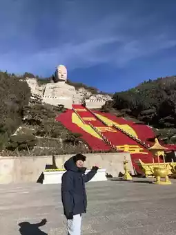 The Mengshan Giant Buddha is located in the Mengshan Scenic Area in Taiyuan, Shanxi Province. The scenic area covers an area of about 8 square kilometers, and the main peak is 1,325 meters above sea level. From a distance, the giant Buddha is like the couplet at the entrance of the mountain: "The mountain is a Buddha, and the Buddha is a mountain."