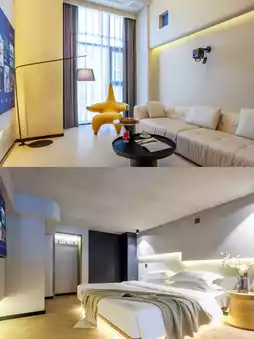 This hotel not only has a great view, but the slide in the room is sure to keep the kids entertained 🎉! The ball pit, slide, and comfortable space make it a paradise for kids 👶. The room is also equipped with smart facilities, such as a smart speaker, smart toilet, washing machine, and more, which is super convenient 🌟!