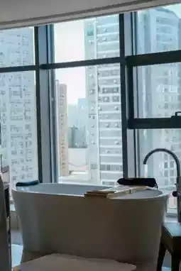 This scenic king room features semi-circular super floor-to-ceiling windows with an unobstructed view of Taiyuan's steel forest. Especially when night falls in all its splendor, the city lights flow like the Milky Way across the mirrored tiles through the misty bathroom. Immersed in the warm bathtub, my fingertips glide across the water's surface, reflecting the gradually illuminating neon lights outside the window. Traffic on the streets weaves into bands of light, and the glass windows refract diamond-like specks of light. Lazy, gentle songs flow from the speakers, as if even time itself is indulging in this private brilliance.
