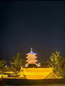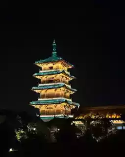 ▸ As the lights come on, the Kui Xing Tower glows like a celestial palace.