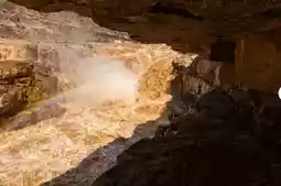 Drive 40 minutes from the county town to the scenic area at 8 AM (navigate to “Hukou Waterfall Shaanxi Entrance,” parking fee 10 yuan per visit). Don’t squeeze with tour groups on the main viewing platform! Turn left 500 meters after the main entrance to the “Dragon Cave” — the real highlight — descend 80 stone steps straight to the foot of the waterfall. The Yellow River water, mixed with silt, crashes against the rocks, and the mist can soak your clothes halfway. Standing on the viewing platform, you can feel the splash hitting your face, 10 times more shocking than viewing from above. Around 10 AM when the sunlight slants, rainbows appear in the mist. Take a horizontal photo with your phone to capture the full panorama of the “Yellow River hanging rainbow.”