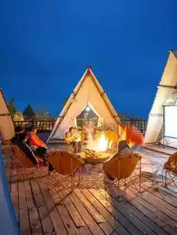 Cloud tent - floating island - tea garden robot - Totoro under the tree - sky mirror - cloud train - tea garden cabin - floating cloud bar sunset - bonfire open-air movie