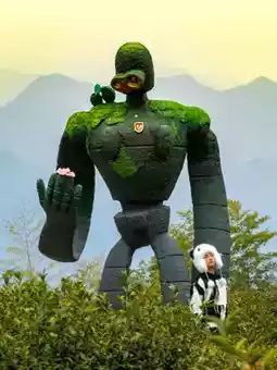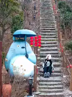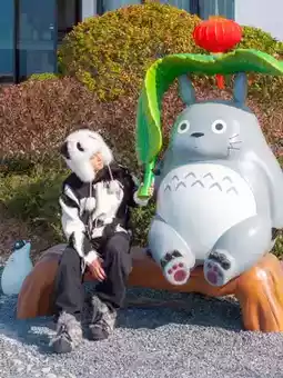 3️⃣Tea garden robot: Take a photo from the front of the tea garden, using the tea tree as the foreground 4️⃣Totoro under the tree: A lying Totoro and a lonely tree (the leaves fall in winter), sitting under the tree to create an atmosphere