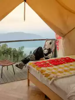 1️⃣Cloud tent: Where we live, facing the distant mountains, you can see the sea of clouds when you get up early, and you can see the sunset in the room.