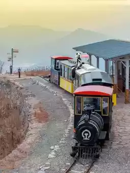 6️⃣Cloud train: A small train on the top of the mountain, a station where Totoro holds an umbrella and waits for the bus, and there is a graffiti wall in the station.