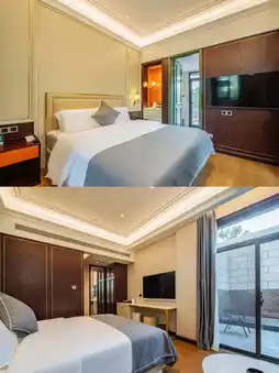 - Neo-Chinese furniture + floor-to-ceiling panoramic windows