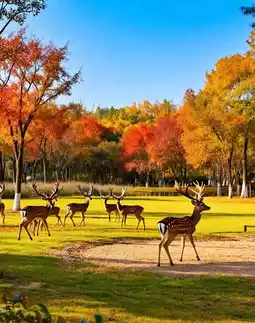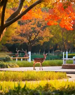 2. Animal Encounters: Nearly 200 "Four Not Like" milu deer roam freely in the deer park, with close-up feeding at the viewing platform; waterfowl park features red-crowned cranes, egrets dancing, and black swans leisurely swimming