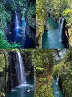 - Takachiho Gorge: Formed by volcanic activity from Mount Aso, this gorge features 100-meter-high cliffs, primeval forests, and the Gokase River flowing through it. Visitors can take a boat tour to admire the Manai Falls. The fresh greenery of summer and the autumn leaves make it a beautiful sight, with mid-November to late November being the best time to visit.