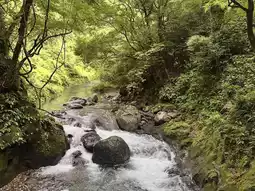 Walk along the Iwato River from Amanoiwato Shrine for about 10 minutes.