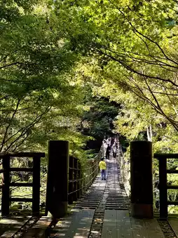 [Ibaraki] A beautiful suspension bridge surrounded by lush green maples