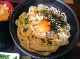 The noodles are homemade, chewy and have a light noodle aroma. The udon is very chewy and delicious whether it is in soup or dry. There is also crispy fried tempura, which is really enjoyable when paired with a cup of warm matcha. The treasure udon is highly recommended.