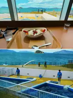 🕐Noon - Lunch at the Shikoku Aquarium restaurant. The second-floor restaurant offers a great view of the sea, and the kids' meal is beautiful!
