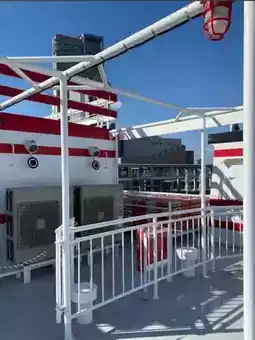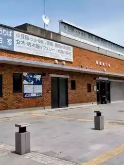 Takamatsu Port is a major hub, with the ferry terminal on the left and the high-speed boat terminal on the right. The second floor has a sky bridge connecting to Takamatsu Station, making it a must-visit spot for those heading to the Setouchi Triennale. While waiting for your boat, take some time to admire these unique pillars.