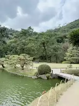 This is Takamatsu, Japan! Many of you might want to feel nature during your travels. In that case, I recommend visiting Takamatsu. This place allows you to experience the natural beauty of Japan. Especially, this park is full of attractions, making it a great spot. On a clear day, the clouds in the sky, the river, and the forests blend together like a painting. I highly recommend visiting here at least once!