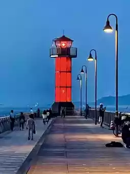 As the sun started to set, I made my way to Setoshirube, a red lighthouse at the edge of the Seto Inland Sea. It’s especially magical in the evening light, watching the boats go by with the sea breeze on your face.
