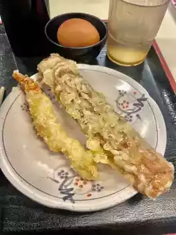 The fried food was crispy, but the inside was moist and chewy, and it went well with the warm noodles.