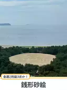 A giant sand art depicting the Kan'ei Tsūhō coin.