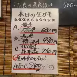 Located near Kataharamachi Station, the seafood izakaya "Kaisen 牡蠣スタンド" is a standing-room-style oyster bar specializing in oysters. Fresh oysters sourced from all over Japan are served raw, grilled, steamed, and fried in a variety of ways. They source their oysters daily from the best sources, ensuring exceptional freshness. The oysters are complemented by a variety of sauces, including yuzu ponzu and miso shigyo, to enhance their flavor. In addition to oysters, they also offer tamagoyaki (fried omelets), edamame, and seafood snacks, making them excellent companions for drinks. The extensive selection of sake, highballs, and wine makes for a great place to enjoy a light drink. The small space creates a cozy, casual atmosphere, making it perfect for solo drinking or small gatherings. Cash is the preferred payment method, so bring your own.