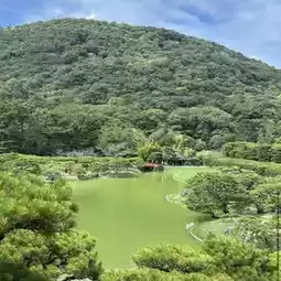 Inside Ritsurin Garden, there is a serene tea house called Kikugetsutei (掬月亭). Built over a pond, this tea house offers breathtaking views through its windows, making it a perfect spot for relaxation. Sipping warm tea and enjoying sweet Japanese confections while admiring the scenery outside felt like time had come to a standstill. It was a moment of pure tranquility, allowing me to set aside all complex thoughts and focus solely on the beauty of the surroundings. This is a highly recommended course for those who wish to experience Japanese culture in a quiet and peaceful setting. 🍵