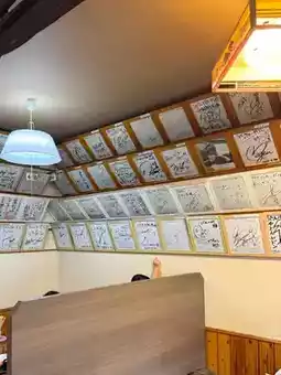 The walls of the restaurant are covered in autographs of celebrities, making for a photo-worthy atmosphere.