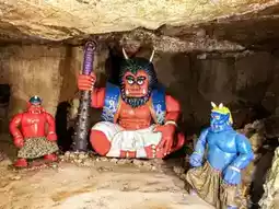 Sentaro Hashimoto, a local historian who taught on Ogijima, discovered the large cave and declared Megijima to be the Onigima Island from the "Momotaro" legend. This place has become a popular tourist attraction due to the legend of the island. The caves are partially excavated and feature many artworks related to ghosts and spirits. For those with limited mobility, it's recommended to purchase a bus ticket at the port. The bus takes about 10 minutes to reach the island.