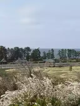 On a clear day, you can see the Tateyama mountain range in the distance, but this time we could only see it faintly.