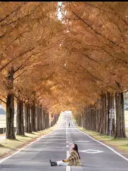 The Metasequoia Avenue stretches for approximately 2.4km (approximately 500 trees) and serves as the approach road to Makino Highlands, creating a truly highland landscape. 🌲🌲🌲 The road continues straight, lined with approximately 500 Metasequoia trees. 🌲