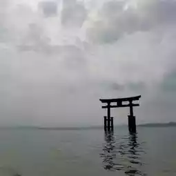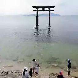 Torii gate on the shore of Lake Biwa, Shirahige Shrine in Omi, Shiga Prefecture