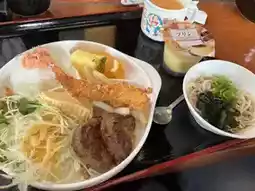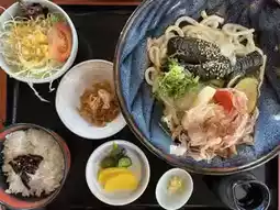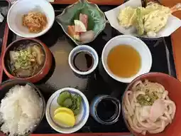 The udon is chewy and delicious, and the other seafood is amazing! ♡ I always order the Colorful Set Meal (1,200 yen) (lol).