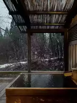 🏖️Environment/Facilities: The hotel offers a variety of hot spring facilities, including public open-air baths separated by gender, private hot spring rooms that require reservations (4 indoor and outdoor rooms in total), and some room types with semi-open-air baths, allowing travelers to choose the type of hot spring bathing they like. If you stay in winter, you can enjoy the romantic and picturesque snow scenery in the open-air hot spring.