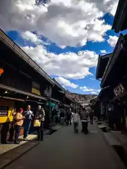 The best-preserved Edo-era district in Takayama. The streets are lined with old wooden buildings, now a pedestrian zone, with many lovely craft shops and wagashi (Japanese sweets) shops.