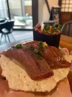 When you come to Takayama Old Street, you definitely can’t miss this popular Hida beef sushi specialty shop "Kinno Kottegyu"! It’s no exaggeration. There are long queues at the door, but the food is served quickly. You can enjoy the dream-like Hida beef sashimi sushi after a short wait.