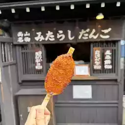 The dango costs 100 yen, and the rice skewer is 400 yen. As the name suggests, the rice skewer has a slightly pressed rice texture. However, the sauce was too strong for my taste, and at 400 yen, it felt overpriced, so I wouldn't recommend it.
