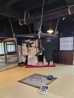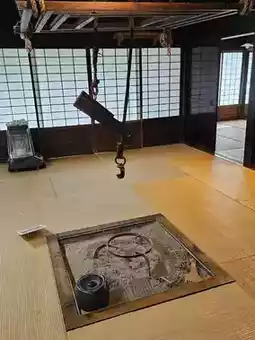 Step into the Former Maeda Residence at Hida Folk Village, where the rare "Rokutsu-style" structure showcases a spacious tatami room, symbolizing the affluence of rural life in the past. Inside, traditional wedding items are displayed, offering a glimpse into the wedding customs and life rituals of the Hida region from bygone eras.