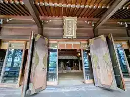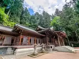 Next to the worship hall, there is a side hall, four shin shrines, Teruzen Shrine, Inari Shrine, Kotohira Shrine, and the pen mound of Tenman Shrine. There is also the Sakurayama Forest Trail, where you can stroll in the forest and bathe in the phytoncides.