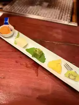 We started with the appetizers. The exquisite and delicious dishes were presented in two long wooden boxes. The presentation was both visually appealing and palatable.